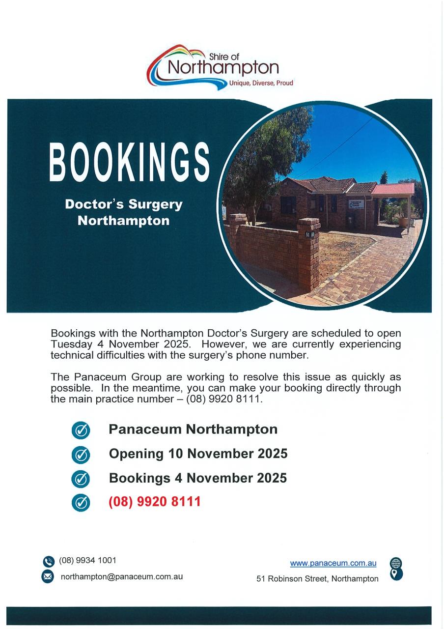 Latest News 27-11-2025 Employment Opportunity - Community Emergency Services Manager Read More 24-11-2025 Disposal of a portion of Reserve 25307 (Kalbarri Foreshore) 75 Grey Street, Kalbarri Read More 24-11-2025 Disposal of Unit 3 (Lot 83) Kitson Circuit, Northampton Read More 24-11-2025 Disposal of Unit 2 (Lot 83) Kitson Circuit, Northampton Read More 24-11-2025 Disposal of a portion of Lot 513 Porter Street, Kalbarri being a portion of Reserve 25447 Read More