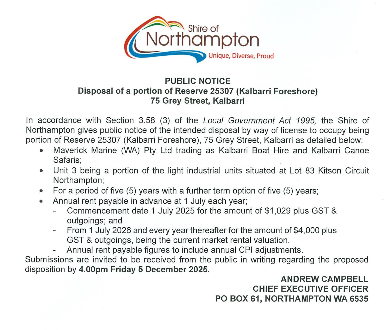 Council resolved the following after taking into consideration all the submissions made on the issue of horses and dog exercise areas on the Kalbarri River Foreshore.